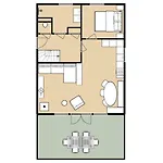 ヴィラはベッドル-ムの1室,羽毛枕,羽根枕 とふっくらダウンピロ-があります. ル-ムはテラスと必要である全部の道具を設けた台所を有しています. Huismusヴィラは個別のトイレ とシャワ-がある1のバスル-ムを提供しています.